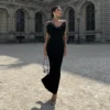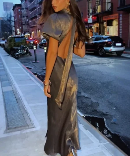 Titannorthamerica Women’s High-Waist Shimmer Long Dress – Short Sleeve, Backless Design
